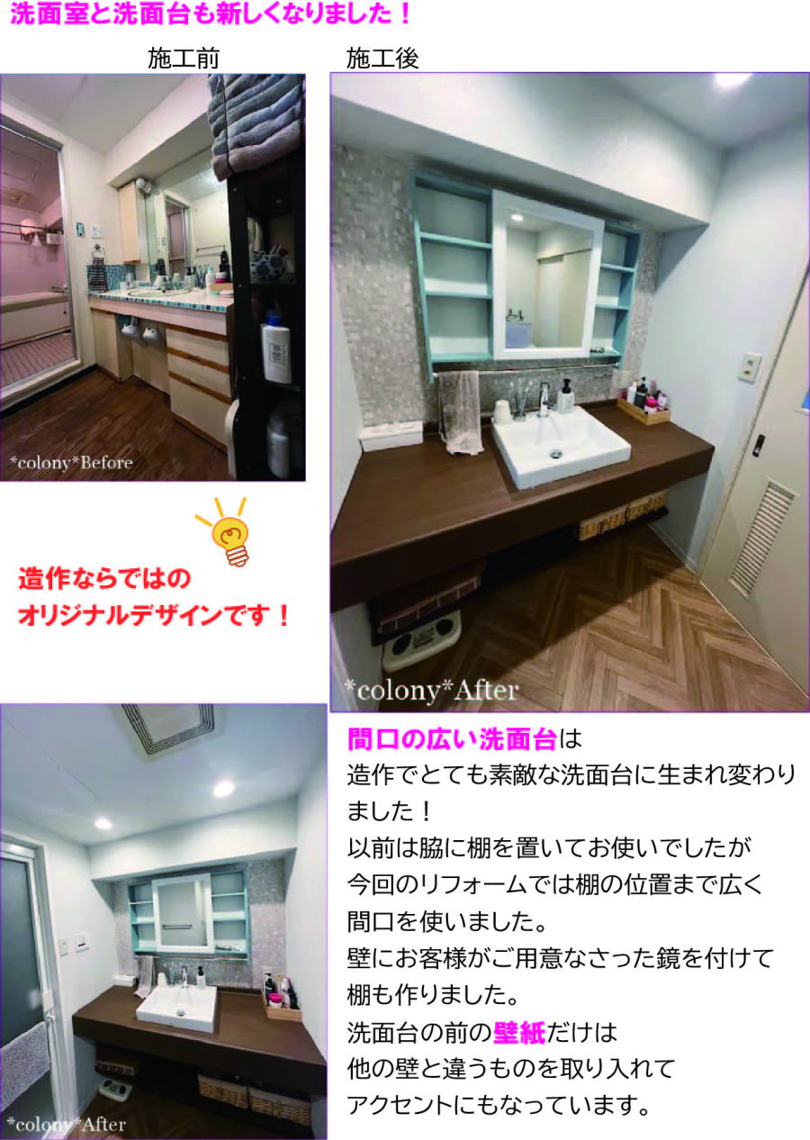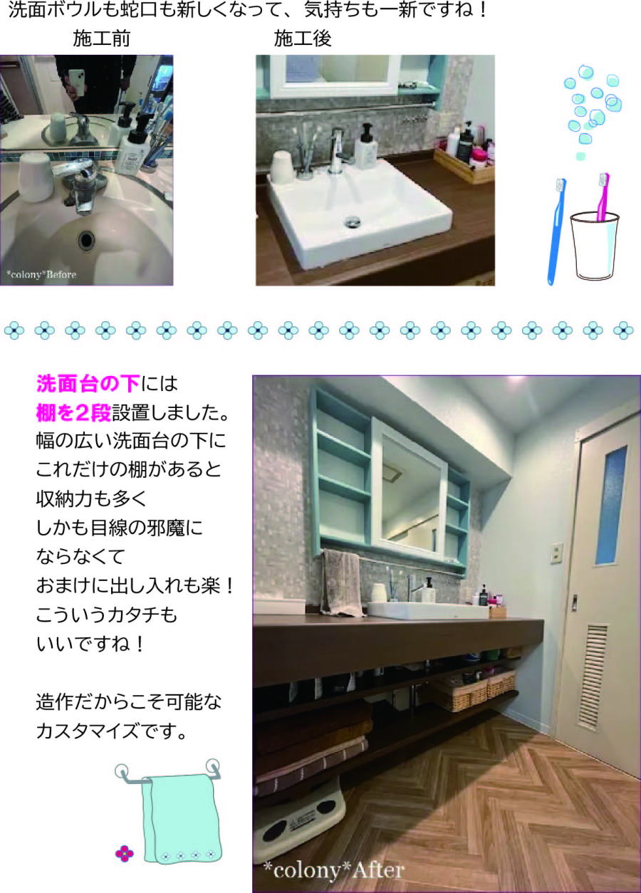 メーカーの商品そのままではない独自の洗面台の楽しさをご覧ください。