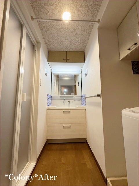 今回は洗面台を交換して、壁や天井のクロスも替えました。