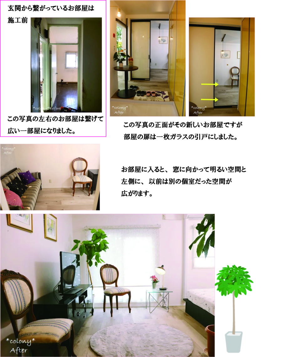 二部屋を繋げて広い一部屋になりました。
